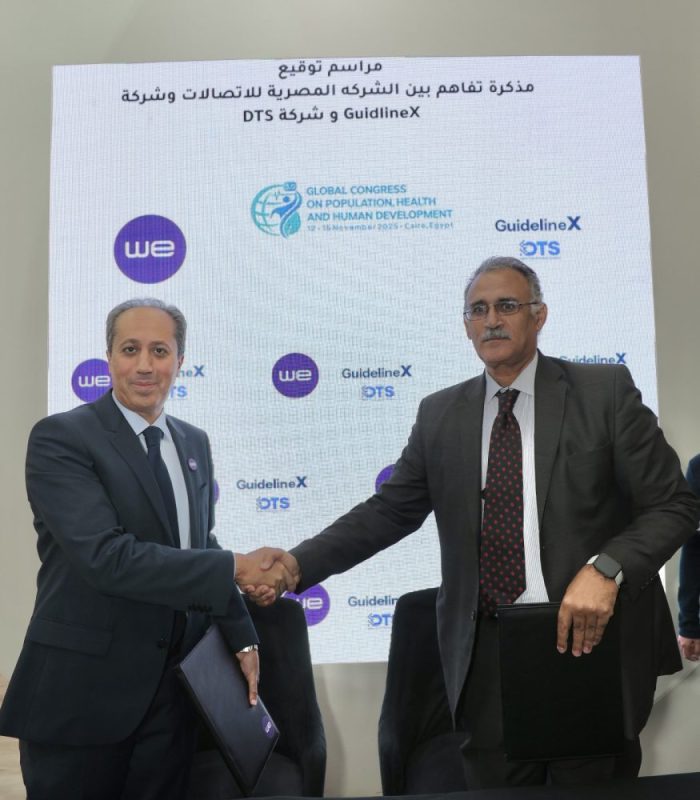 كذلك وقعت المصرية للاتصالات مذكرة تفاهم مع منصة الذكاء الاصطناعي “GuidelineX” ووكيلها المحلي شركه “DTS” لدمج خدمات دعم القرار الإكلينيكي والتحليلات الطبية المدعومة بتقنيات الذكاء الاصطناعي داخل منظومة WE HealthCloud، بما يُساعد الأطباء على اتخاذ قرارات دقيقة بناءً على الإرشادات الطبية العالمية وتحليل البيانات السريرية لحظيًا، مما يرفع كفاءة التشخيص ويُقلل من الأخطاء الطبية، ويستهدف هذا التعاون تعزيز عملية التحول الرقمي وخدمات الرعاية الطبية القائمة على البيانات في جميع المستشفيات المصرية.