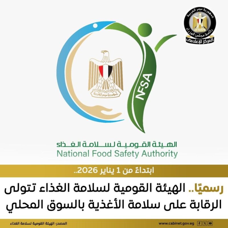 الهيئة القومية لسلامة الغذاء تعلن توليها رسميًا مسؤولية الرقابة على سلامة الأغذية اعتبارًا من اليوم