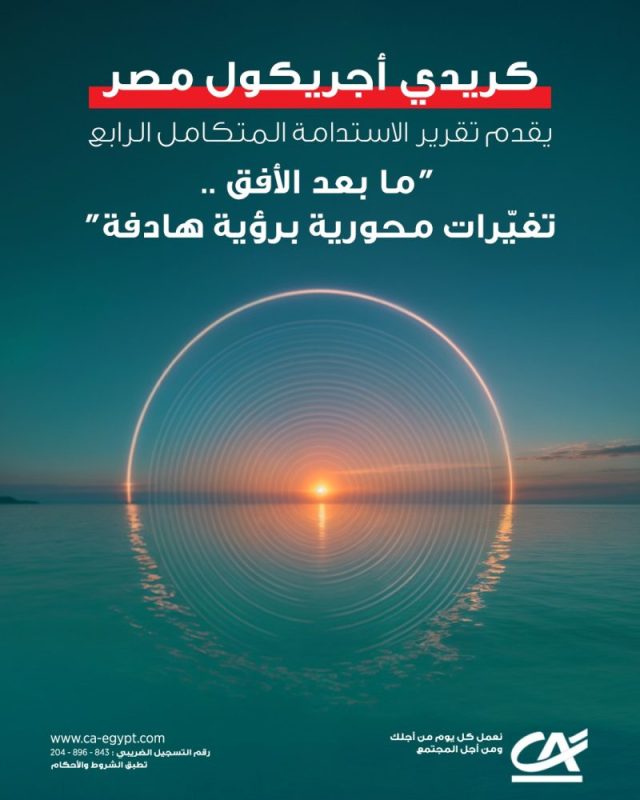 القاهرة، مصر، 1فبراير 2026 – يعلن بنك كريدي أجريكول مصر عن إصدار تقريره الرابع عن الاستدامة تحت عنوان “ما وراء الأفق: تحولات مدفوعة بالهدف”، في خطوة تؤكد التزام البنك المستمر بالممارسات المصرفية المسؤولة، والنمو المستدام، والشفافية تجاه عملائه وموظفيه والمجتمع ككل.