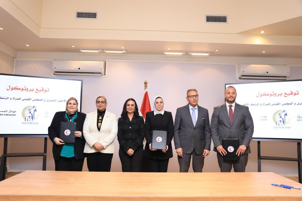 البنك الأهلي المصري يوقع بروتوكول تعاون مع الهلال الأحمر المصري والمجلس القومي للمرأة