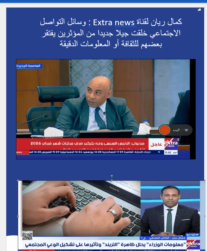 أكد الكاتب الصحفي كمال ريان رئيس تحرير موقع الرسالة الاقتصادية أن اهتمام الحكومة بدراسة “التريندات” ومنصات التواصل الاجتماعي يعكس الدور الكبير الذي أصبحت تقوم به هذه المنصات في صناعة الرأي العام وتشكيل وعي المواطنين، بعدما لم تعد وسائل الإعلام التقليدية وحدها المصدر الرئيسي للمعلومات.