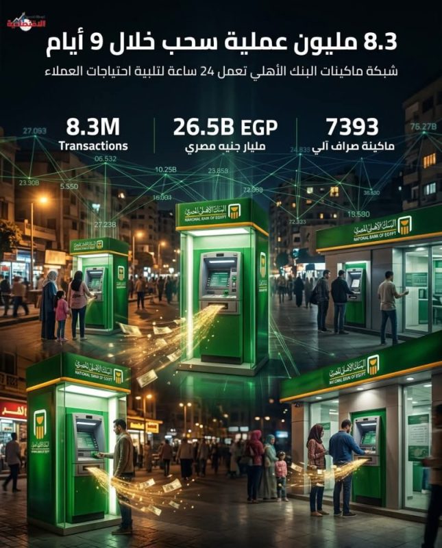 تزامنا مع بداية صرف المرتبات وعطلات عيد الفطر المبارك. 8.3 مليون عملية سحب من ماكينات الصارف الالي بالبنك الأهلي المصري