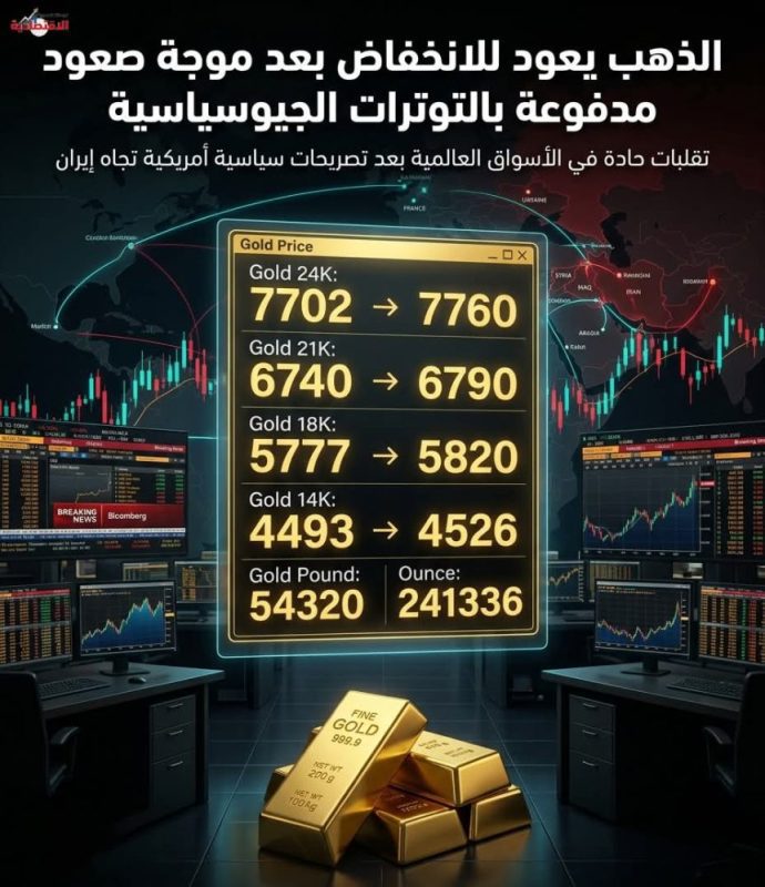 جاء ارتقاع سعر الذهب تأثرا بارتفاع الأسعار عالميا بعد تهديدات الرئيس الامريكي ترامب الجديدة لإيران بضربها بقوة أكبر اذا لم تعترف بأنها هزمت عسكريا على حد قوله