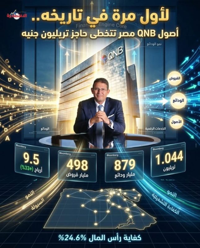 • بلغت إجمالي الأصول المجمعة 1,044 مليار جنيه مصري بنهاية مارس 2026 بزيادة قدرها 114 مليار جنيه مقارنة بديسمبر 2025 وبنسبة نمو 12%.