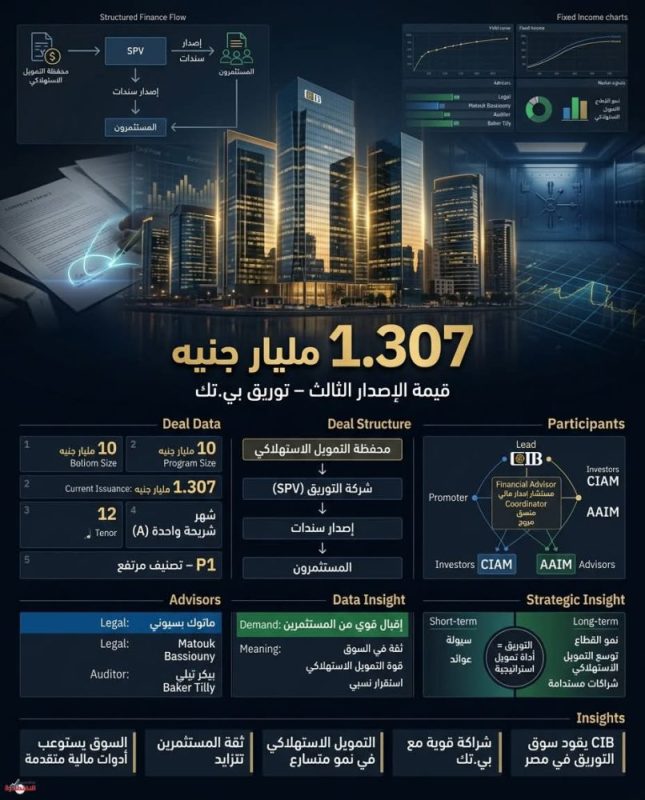 إنفوجراف .. CIB يُتم بنجاح الإصدار الثالث من البرنامج الرابع عشر لتوريق شركة “بي. تك” بقيمة1.7 مليار جنيه