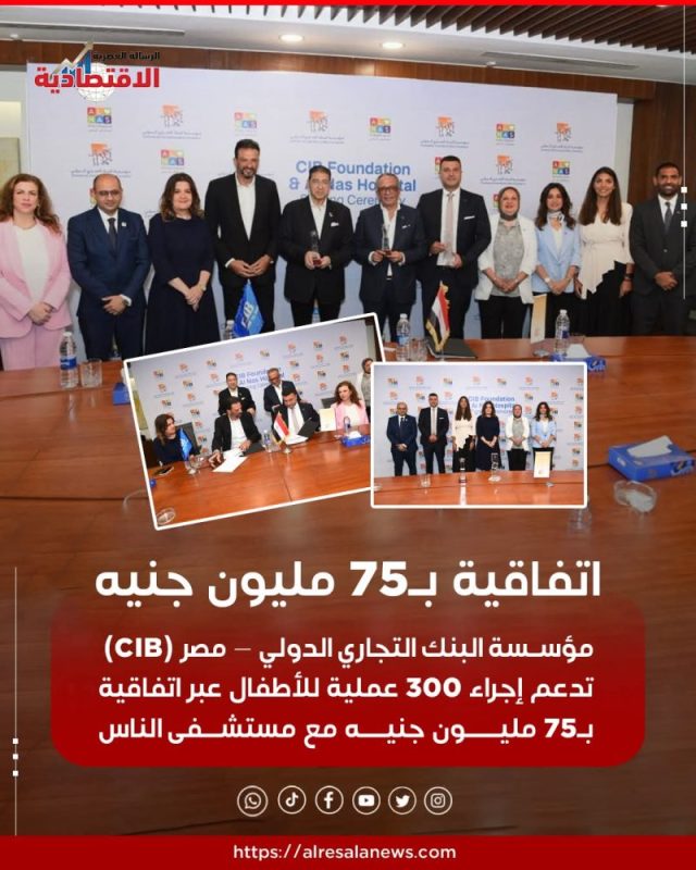 مؤسسة البنك التجاري الدولي – مصر (CIB) تدعم إجراء 300 عملية للأطفال عبر اتفاقية بـ75 مليون جنيه مع مستشفى الناس